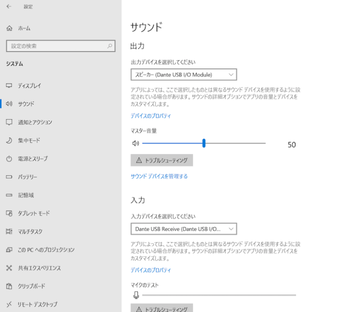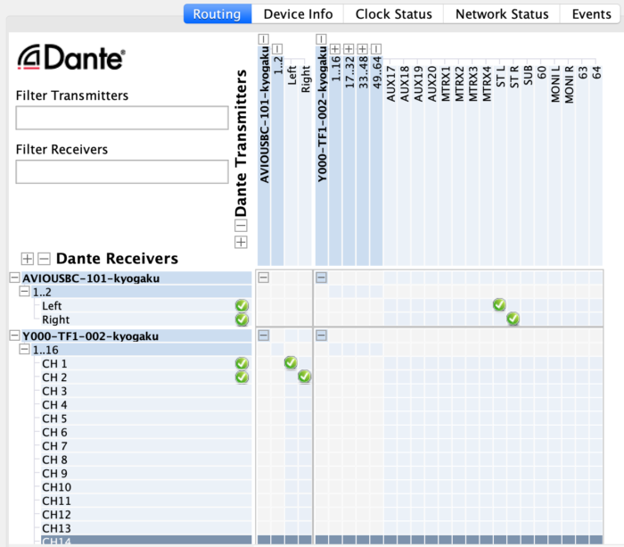 続いてDante controllerで見てみましょう